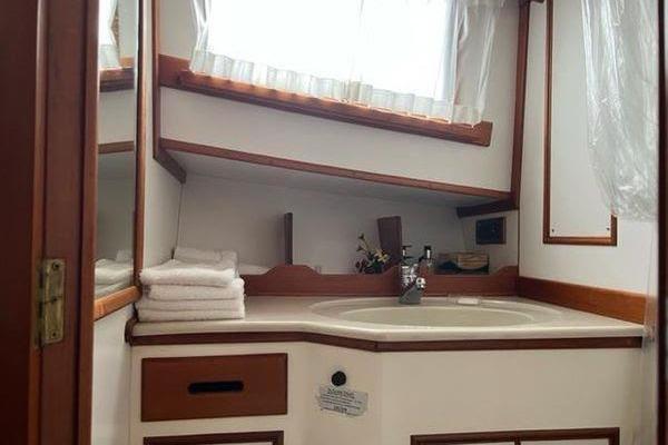 Powered by twin reliable Cummins 6-cylinder 6BT 5.9 (210 hp), you can guarantee that she has the power to safely and reliably transport you the destination of your choice.