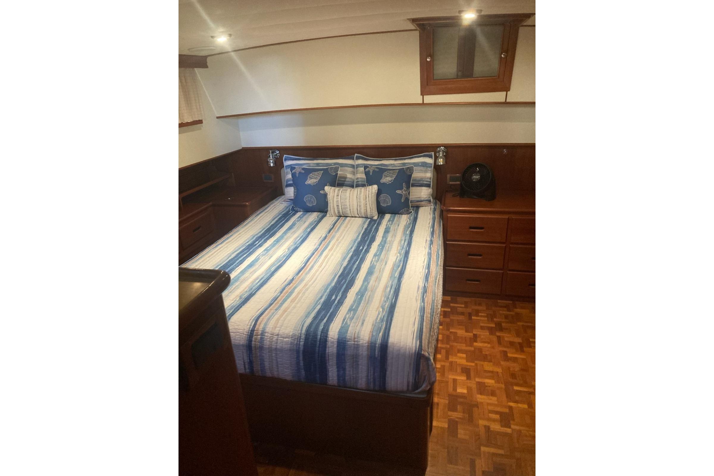 - Forward V-berth with storage