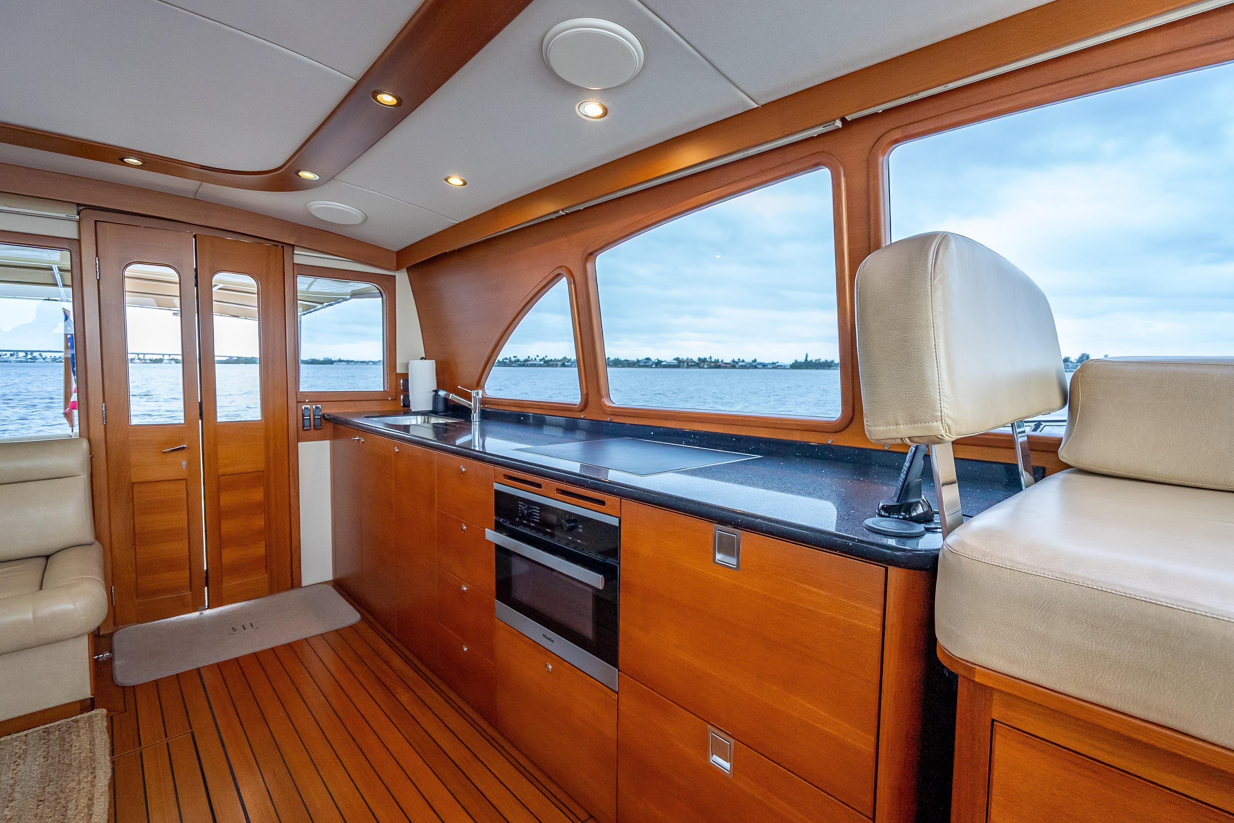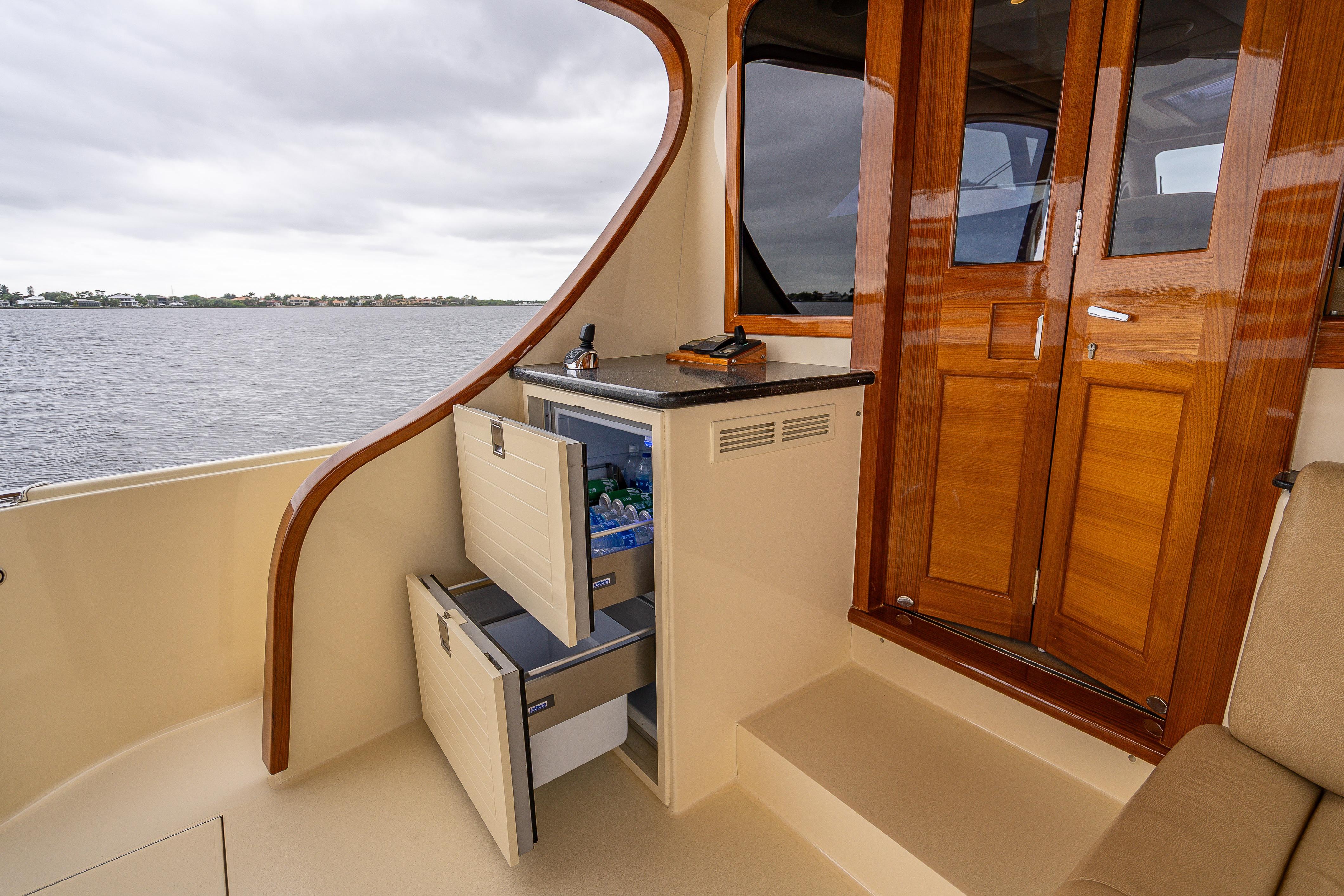- Cockpit wet bar with Silestone counter with AC/DC refrigerator, freezer, sink, storage