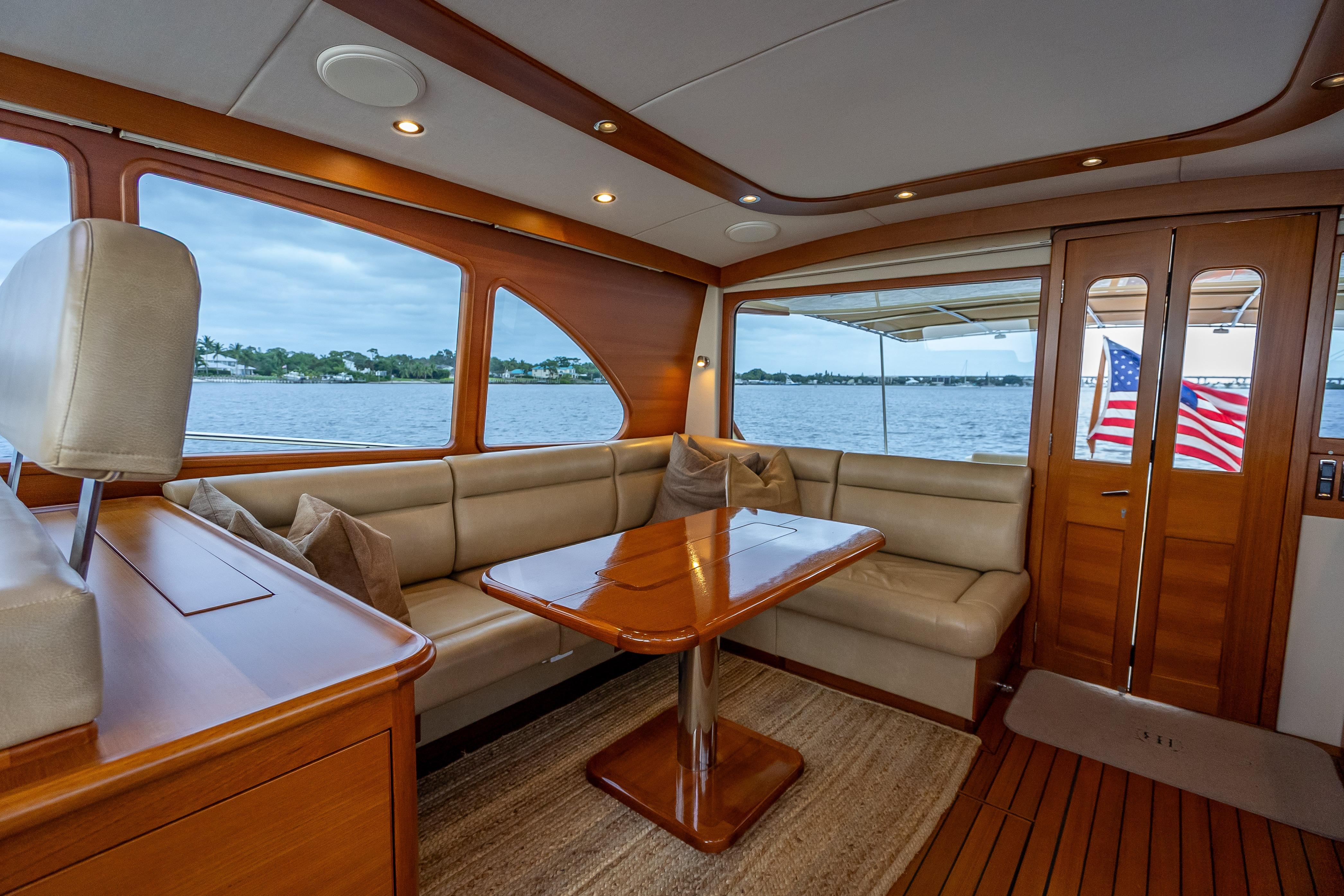 - Forward facing cockpit seat with teak table finished in high gloss varnish